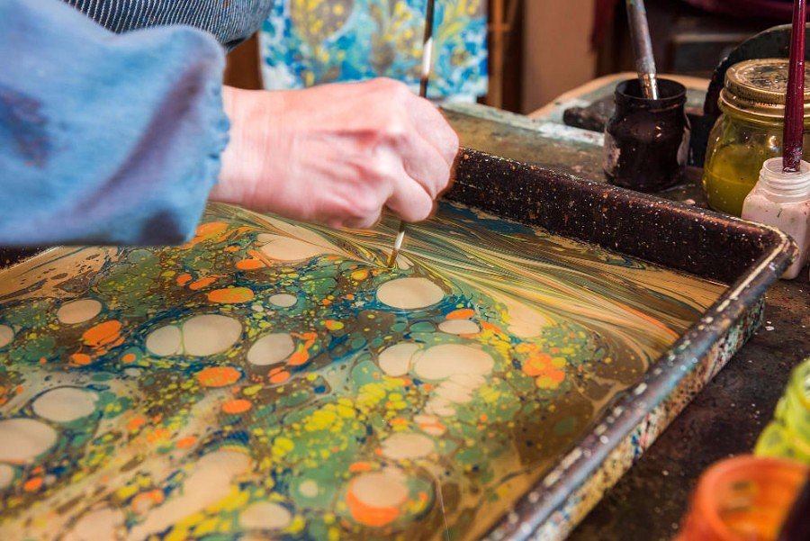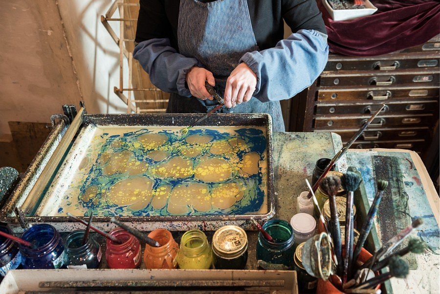 After I had all my scent-es filled, I headed to Giulio Giannini e Figlio– an artisan workshop, founded In 1856, known worldwide for its hand-tooled Leather Book Bindings, and Hand Marbled Decorated Paper. Immediately walking into the store, You can tell how much work, patience, and craftsmanship goes into each item. They work in the back room where you can watch their process, or try it yourself in one of the classes they offer! They’re one of the few remaining shops in the world that make these papers by hand, so every sheet is special.