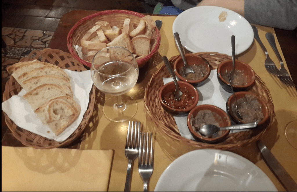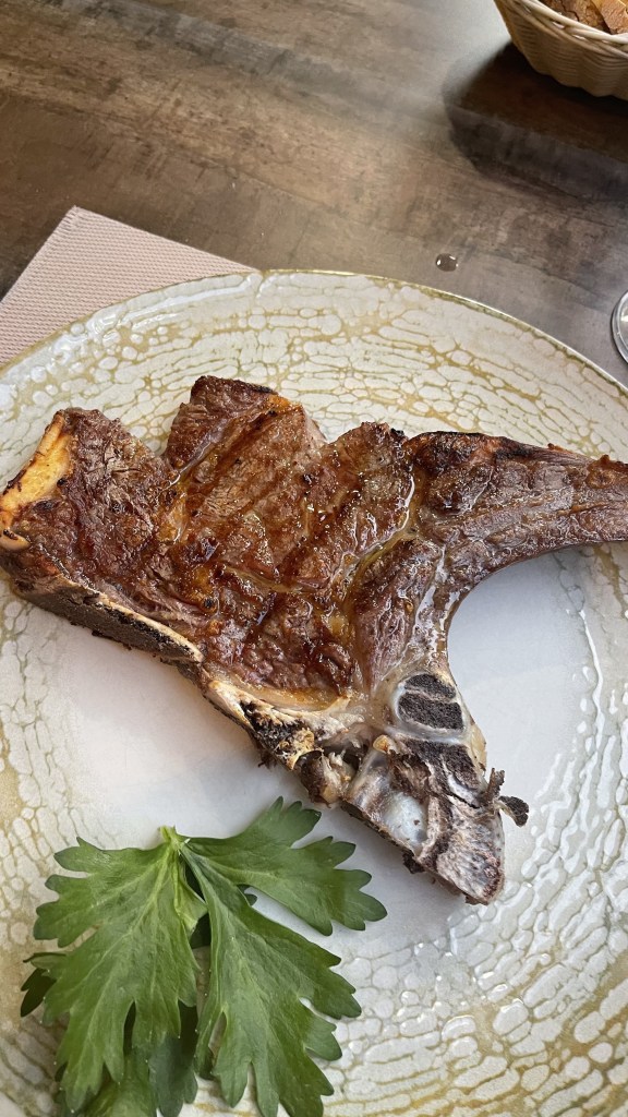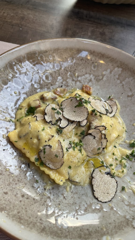 After all that walking and learning- I had worked up an appetite and headed over to Trattoria Bordino, which is a decades-old, cavern like venue in a medieval building, known for Florentine steak & Tuscan wine. It is tucked away from the main streets, situated perfectly next to a church. I got there around 7pm- which apparently is the senior citizen discount time in Europe because they had just opened. I was able to enjoy a typical Florencian meal of bruschetta, truffle carbonara, and Steak Florentine. Ending the night with gelato at Gelateria Santa Trinita. While I got the Mascarpone and Nutella combo- their unique flavors like Black Sesame and Blueberry fig are on my bucket list for next time.