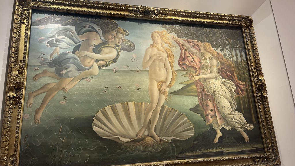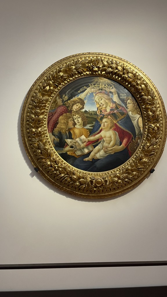 After Michelangelo, we walked through Florence learning about Cathedral of Santa Maria del Fiore, spotting some ancient graffiti, to head to the Uffizi Gallery to see DaVinci, Michelangelo, Botticelli, and other great artists all under one roof. While seeing these works of art was extraordinary, my favorite part was the Tribuna room. It was the office of Francesco I de’ Medici who wanted the most ornate room in the Gallery. The ceiling is covered in almost 6000 pearls set on a red background that was achieved by varnishing millions of red cochineals (a roly poly like insect).