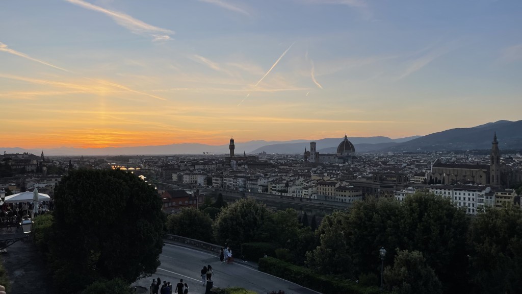 After dropping off my bags, I went to go grab a sunset drink at Piazzale Michelangelo. Walking there would’ve made me miss the view, so I used to app MeTaxi. Uber only exists in Rome, so this app allows a third party to call the taxi service for you and arrange a cab. It was so helpful and let me get there in time to relax and watch the sunset.